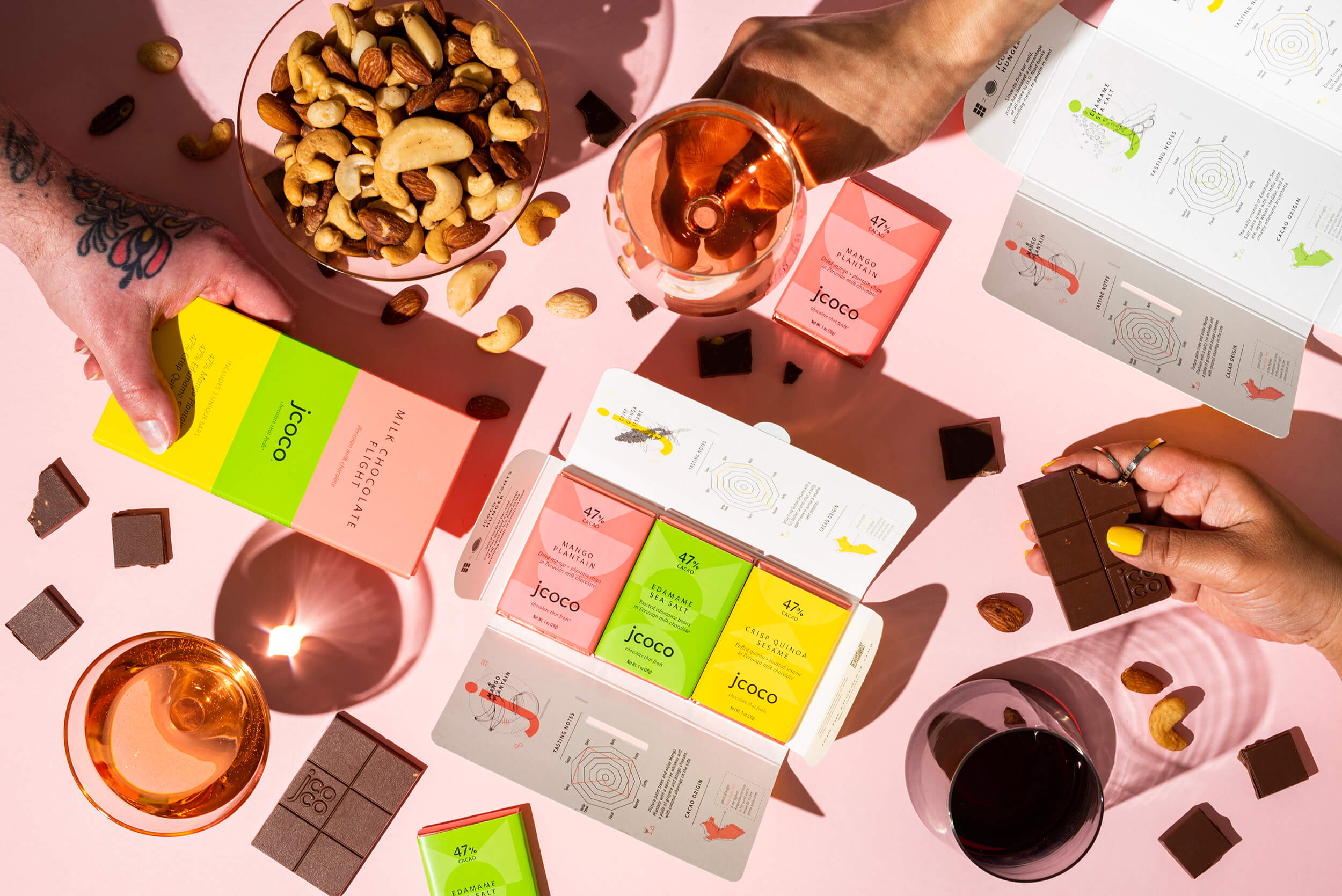 Our Milk Chocolate Flight also features our Mango Plantain bar, alongside Edamame Sea Salt and Crisp Quinoa Sesame. Enjoy three new flavors in this unexpected and creamy milk chocolate flight! Shop here.